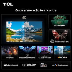 Descubra a qualidade impressionante da Smart TV TCL 65C7K 65” QLED Mini LED 4K Ultra HD, com Google TV, frequência de até 144 Hz e painel Imax Enhanced para imagens vibrantes. Aproveite apps como Netflix, Prime Video e Disney+, comando de voz hands-free com Google Assistente, e som 2.1 canais com subwoofer integrado. Experiência gamer com input lag de 10 ms e HDMI 2.1 para máxima performance. Design elegante na cor preta, conectividade completa e garantia de 12 meses TCL. Eleve o entretenimento da sua casa com a tecnologia de ponta da TCL!