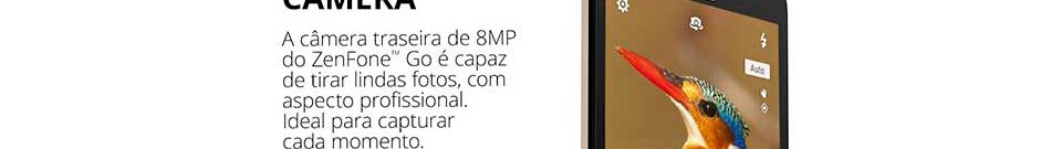 Sua câmera principal de 8MP permite fazer fotos fantásticas, e a câmera frontal de 2MP garante aquela selfie incrível com os amigos. O Zenfone Go tem um excelente desempenho por conta de seu processador Qualcomm Snapdragon de quatro núcleos.