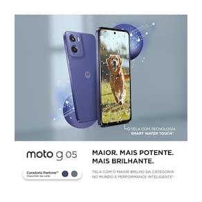 O Smartphone Motorola Moto g05 é o salto que faltava para sua produtividade. Se você procura um aparelho rápido, resistente e inteligente o Moto g05 é a opção ideal. Equipado com um display de 6,7 e recurso Superbrilho, sua tela garante cores profundas e um brilho que se adapta a diferentes tipos de iluminação ambiente. Alto Desempenho: 4GB RAM + 8GB Ram Boost. O Moto G05 é a combinação perfeita entre a velocidade do processador Helio G81 (2,0 GHz Octa-Core) e a potência da tecnologia RAM Boost que garante uma experiência multitarefa em tempo real. Grave, jogue e navegue nas redes sem preocupações! Durabilidade e acabamento premium. Seu revestimento em Gorilla Glass 3, entrega uma tela com superfície reforçada mais resistente à marcas e riscos. Enquanto, sua tecnologia Smart Water Touch, combinada com sua estrutura em Vegan Leather são pontos que conferem uma durabilidade excepcional ao Moto G05, tornando-o mais resistente à respingos de água. Até 40 horas longe da tomada. Sua bateria de 5.200 mAh oferece até 40 horas de autonomia para você aproveitar mais tempo longe das tomadas. Mas, com grandes baterias, também temos grandes carregadores. Por isso, ele acompanha um carregador rápido de 10W que garante uma recarga rápida e eficiente.
