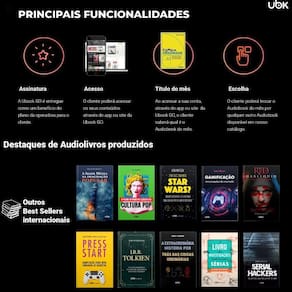 Audio livros e Livros Digitais por streaming: você terá acesso ao nosso acervo de modo limitado e Vitalício por mês, de 10 Ubook para ouvir e ler milhares de títulos - livros, revistas, podcasts etc. - de várias categorias e idiomas em nossa plataforma, sendo ela a maior plataforma de entretenimento em áudio da América Latina.