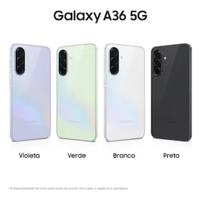 Conteúdo da embalagem: 1 x Aparelho Celular Samsung Galaxy A36 5G 1 x Carregador 1 x Cabo USB Tipo-C 1 x Extrator de Chip 1 x Manual do Usuário