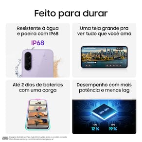Veja a ficha completa do Smartphone Samsung Galaxy A37 5G Tela 6.7" 128GB Câmera 50MP!Para completar a experiência, o
