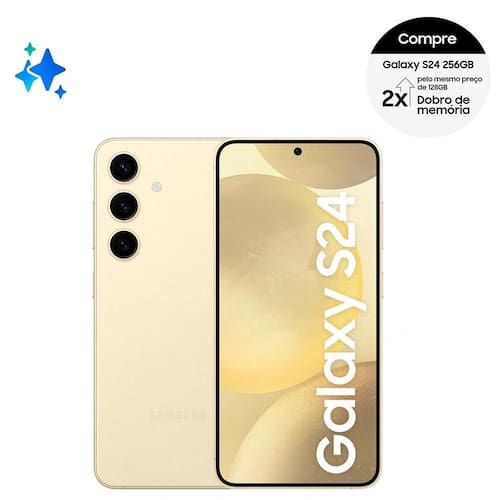 Samsung Galaxy S24, 256GB, 8GB RAM, bateria 4000mAh, Câmera Tripla Traseira de 50MP , Exynos 2400, tela infinita 6.2" 1-120Hz, Dual Chip, eSIM, Cadeado Galaxy, Galaxy AI, inteligencia artificial, tradução de voz Características Sistema Operacional Android 14.0, 64bit Tela Tamanho: Tela infinita 6.2" 1-120Hz Conectividade 5G Wi-Fi EDGE GPRS Bluetooth Capacidade 256GB * * Parte da memória interna já é utilizada pelo sistema operacional e aplicativos pré-instalados Processador Processador Exynos 2400 Memória RAM 8GB Câmera Traseira Tripla de até 50MP Flash Câmera Frontal Selfie de 12MP Dual Pixel AF Filmadora UHD 8K (7680 x 4320) @60fps Outros Recursos Dual Chip Tipo de Chip: Nano-SIM (4FF) (não incluso) GPS Alerta Vibratório Recursos de Chamadas Capacidade Máxima de Contatos: 250 - SIM CARD Banda: 5 bandas - FDD: N1(2100), N3(1800), N5(850), N7(2600), N8(900), N28(700) TDD: N40(2300), N41(2500), N78(3500) Frequência: 2.8GHz Viva-voz Bateria Ions de Lítio Cor Creme EAN 7892509134507 Especificações Técnicas Modelo: SM-S921BZYKZTO Garantia: 12 meses Certificado de Homologação da ANATEL: 20390-23-00953 Dimensões e Peso Dimensões do produto sem embalagem (AxLxP): 147x70,6x7,6 mm Dimensões do produto com embalagem (AxLxP): 165x89,0x55,0 mm Peso do produto sem embalagem: 0,209 Kg Peso do produto com embalagem: 0,348 Kg Itens Inclusos Aparelho Celular Carregador Cabo USB Extrator de Chip Manual do Usuário