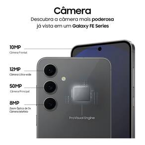 Descubra a câmera mais poderosa já vista na família Galaxy FE. Com sua câmera tripla de 50MP e câmera frontal de 10MP, o S24 FE permite que você tenha fotos e vídeos incriveis de alta qualidade, mesmo em ambientes com pouca luz. Com suas funções do Galaxy AI, permite que você faça edições incríveis sem complicação.