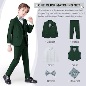 - Pacote de roupas para adolescentes: 6 peças incluem 1* camisa de mangas compridas, 1* gravata borboleta removível, 1* calça+1 colete, 1 lenço+1 jaqueta.