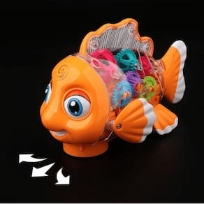 Música e Movimento: Este brinquedo não é apenas visualmente atraente, mas também auditivamente envolvente. Ele toca músicas alegres enquanto se move sozinho, movendo os olhos e nadadeiras por meio de dispositivos mecânicos. Uma verdadeira festa aquática