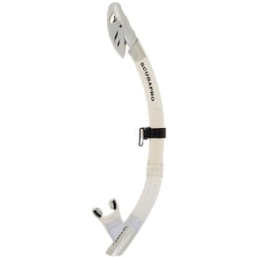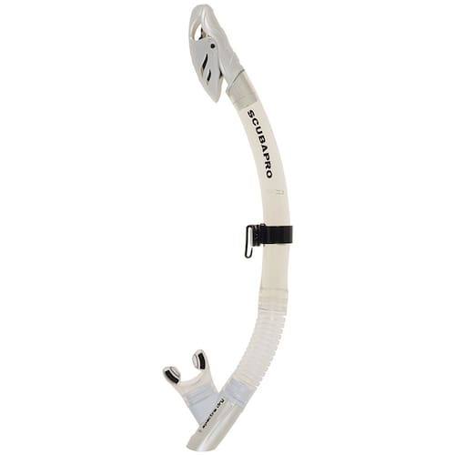 Snorkel seco SCUBAPRO Spectra com válvula de purga, tubo corrugado inferior flexível, bocal tipo regulador e clipe de conexão rápida, transparente/branco — o design da parte superior seca do Spectra veda o tubo quando o snorkel está submerso, então você não precisa limpar o snorkel ao ressurgir. - Uma válvula de purga eficiente expulsa qualquer água que possa entrar nas vias aéreas, eliminando a sensação de borbulhar que você tem ao respirar um snorkel molhado. - Graças ao tubo corrugado inferior flexível, o bocal do snorkel fica convenientemente suspenso na hora de mudar para o regulador. - O bocal em estilo regulador oferece boas abas para criar um ajuste confortável, ideal para longas aventuras de mergulho com snorkel. - Motivada para inovar constantemente e melhorar a experiência de mergulho, a SCUBAPRO constrói equipamentos de alta qualidade para o trabalho, o esporte e o estilo de vida de pessoas cuja paixão é encontrada abaixo da superfície.