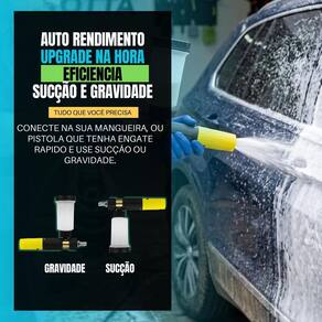 Se você busca um detalhamento automotivo de alta precisão, o modelo Mini Foam a Gravidade é a escolha ideal. Diferente dos canhões convencionais, seu sistema de alimentação por gravidade garante o aproveitamento de 100% do shampoo, eliminando o desperdício de produto que costuma ficar no fundo do reservatório.