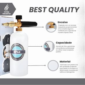 Obtenha uma limpeza profissional com o snow foam canhão de espuma de 1 litro, compatível com várias lavadoras de alta pressão. Ideal para uma lavagem completa e eficiente, produz uma espuma densa que remove sujeiras e contaminantes com facilidade. Perfeito para manter seu veículo ou superfícies sempre impecáveis