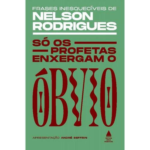 Muito além de um mero recorte de frases inesquecíveis sobre os mais diversos temas, Só os profetas enxergam o óbvio, apresentado pelo crítico André Seffrin, é um prato cheio para quem quer entrar no universo rodriguiano e conhecer ou rever suas opiniões firmes, por vezes polêmicas, mas incrivelmente atuais. Ácidas, divertidas, espantosas, proféticas, impactantes, geniais: as frases de Nelson Rodrigues fazem dele, como escreveu Carlos Heitor Cony, de longe o maior fabricante de bordões da nossa literatura .