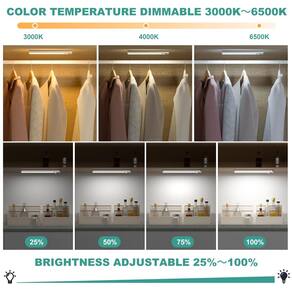 Luzes de armário com sensor de movimento LED para armário - ?Iluminação lateral e luz brilhante e suave?As luzes DEALGADGETS sob o armário com 29 contas de lâmpada LED adotam um novo processo de produção de emissão de luz na lateral, que refrata a luz para a placa guia de luz através do refletor e depois distribuídas uniformemente na superfície da lâmpada através da placa difusora. A luz será mais brilhante e suave sem brilho, protegendo assim seus olhos. Estas luzes embaixo do armário são feitas de liga de alumínio, resistentes ao uso. - ?Brilho regulável e 2 modos de trabalho?Estas luzes LED para armário suportam ajuste de brilho de 3 níveis e 10%-100% de escurecimento contínuo, para que você possa personalizar o brilho de acordo com diferentes necessidades de iluminação. 2 modos de trabalho podem ser selecionados por um botão nestas luzes adesivas no armário. Sob o modo de sensor de movimento, estas luzes sob balcão detectarão automaticamente o movimento humano dentro de uma faixa de 3 m/100° e desligarão automaticamente após 20 segundos sem movimento em ambientes escuros. - ?Recarregável com USB-C e economia de energia?Estas luzes LED operadas por bateria têm uma bateria recarregável de alta capacidade embutida de 1000 mAh, recarregável USB-C padrão e podem ser facilmente carregadas no computador, carregador portátil ou tomada USB através do cabo USB (incluído). Luz vermelha indica carregamento, luz verde indica totalmente carregado. Leva apenas 3-4 horas para carregar totalmente e acende por 5-80 horas no modo sempre ligado (dependendo do brilho) ou 7-25 dias no modo sensor de movimento (dependendo da frequência de uso). - ?Design ultrafino e fácil instalação?O sensor de movimento de luz embaixo do armário tem apenas 9 mm de espessura e seu tamanho compacto o torna versátil, fornecendo luz para espaços apertados e cantos escuros. Com ímãs embutidos, a luz sob balcão pode grudar em qualquer ferro ou você pode usar as folhas de ferro incluídas com fita para colar em qualquer superfície que não seja passada. Quando precisar carregar ou trocar de lugar, você pode tirar a luz do armário a qualquer momento. - ?Ampla aplicação?Esta luz de armário com sensor de movimento LED é ideal para quarto, quarto de bebê, escadas, cozinha, armário, armário, corredor, oficina, porão, garagem e outros lugares. Você receberá 3 luzes sob o balcão, 3 cabos de carregamento, 6 folhas de ferro com fita adesiva para instalação e 1 x instruções de uso. Você desfrutará de substituição vitalícia e serviço amigável 24 horas. Sinta-se à vontade para entrar em contato conosco se tiver algum problema!