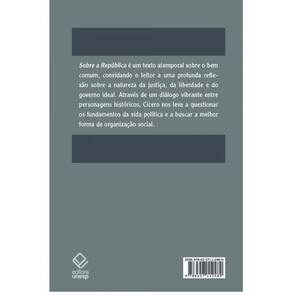 Uma profunda reflexão sobre a natureza da justiça, da liberdade e do governo ideal, pelo maior dos oradores romanos Sobre a República é um texto atemporal sobre o bem comum, convidando o leitor a uma profunda reflexão sobre a natureza da justiça, da liberdade e do governo ideal. Através de um diálogo vibrante entre personagens históricos, Cícero nos leva a questionar os fundamentos da vida política e a buscar a melhor forma de organização social.