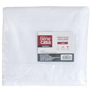 Sobre Lençol Solteiro King Hotelaria 180x280cm Branco - Branco Óptico, Bainha de 4cm, Costura Dupla, 150 Fios, 50% Algodão e 50% Poliéster, Costura reforçada para lavação Industrial