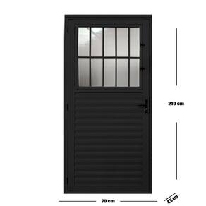 NÃO recomendamos o uso de espuma expansiva na instalação, pois pode danificar o produto. Deve estar em nível e prumo e é imprescindível estar em esquadro para que a funcionalidade e qualidade sejam de 100%. Largura do Batente: 4,5 cm Acompanha Batedor: Não Acompanha Batente: Sim Acompanha Dobradiça: 03 Acompanha Fechadura: Sim Acompanha Guarnição: Não Acompanha Manual de Instalação: Sim Acompanha Puxador: Não Acompanha Trinco: Não Altura: 210 cm Ambiente Principal: Área de Serviço Ambientes Recomendados: Externo, Interno Cor: Preto Cor do Batente: Preto Cor do Produto: Preto Cor do Produto: Preto Cor do Vidro: Incolor Elétrica: Não Escala de Brilho: Semi-Brilho Espessura: 4,5 cm Espessura do Vidro: 3 mm Isolamento Acústico: Não Itens Inclusos: 01 porta Lado de abertura: Direita Largura: 70 cm Linha ou Coleção: Linha 25 Manual de Montagem e Instalação: https://cdn2.madeiramadeira.com.br/atributo/esquadrias-bergame/2312636-5103-17260808427602.pdf Material da Dobradiça: Alumínio Material do Batente: Alumínio Necessita Montagem: Não Número de Folhas: 01 Origem do Produto: Nacional Peso: 12 kg Possui Grade: Sim Recomendações de Uso, Manutenção e Limpeza: Massa de polir, pano perflex Textura da Porta: Veneziana Tipo de Dobradiça: Simples Tipo de Parede: Alvenaria Tipo de Porta: Abrir Tipo de Vidro: Mini Boreal Vidro incluso: Sim Marca: Esquadrias Bergamo