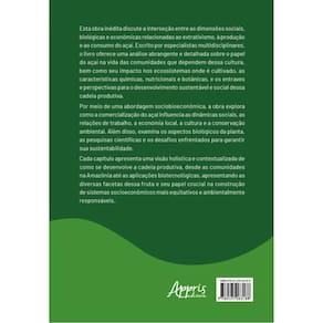Esta obra inédita discute a interseção entre as dimensões sociais, biológicas e econômicas relacionadas ao extrativismo, à produção e ao consumo do açaí. Escrito por especialistas multidisciplinares, o livro oferece uma análise abrangente e detalhada sobre o papel do açaí na vida das comunidades que dependem dessa cultura, bem como seu impacto nos ecossistemas onde é cultivado, as características químicas, nutricionais e botânicas, e os entraves e perspectivas para o desenvolvimento sustentável e social dessa cadeia produtiva. Por meio de uma abordagem sociobioeconômica, a obra explora como a comercialização do açaí in?uencia as dinâmicas sociais, as relações de trabalho, a economia local, a cultura e a conservação ambiental. Além disso, examina os aspectos biológicos da planta, as pesquisas cientí?cas e os desa?os enfrentados para garantir sua sustentabilidade. Cada capítulo apresenta uma visão holística e contextualizada de como se desenvolve a cadeia produtiva, desde as comunidades na Amazônia até as aplicações biotecnológicas, apresentando as diversas facetas dessa fruta e seu papel crucial na construção de sistemas socioeconômicos mais equitativos e ambientalmente responsáveis.