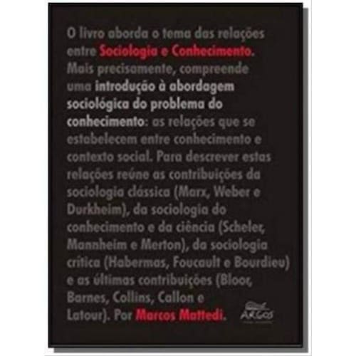 A obra aborda as relações entre sociologia e conhecimento. Mais precisamente, compreende uma introdução à abordagem sociológica do problema do conhecimento: as relações que se estabelecem entre conhecimento e contexto social. Para descrever essas relações, reúne as contribuições da sociologia clássica, da sociologia do conhecimento e da ciência da sociologia crítica. Ean: 9798598981573