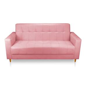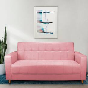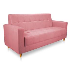 Sofá 03 Lugares 180cm Atenas Suede Rosa Bebê Pés Castanho - Pallazio