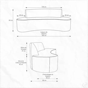 Largura do Assento: 150 cm