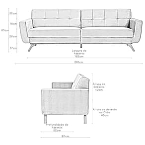 Assento: Espuma D-26 HR sobre percintas elásticas conforto duradouro e firmeza ideal.