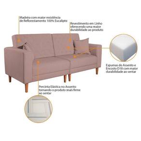 Sofá 03 Lugares Living Ponza Linho Cor Rosê