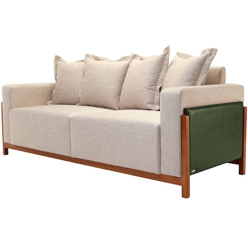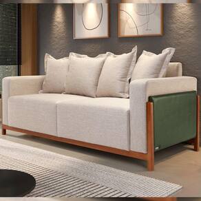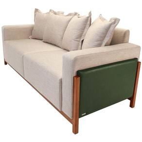 Sofá 03 Lugares Para Sala De Estar 198 cm Khali B04 Linho Bege Couríssimo Verde - Lyam