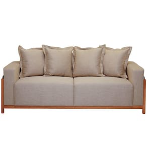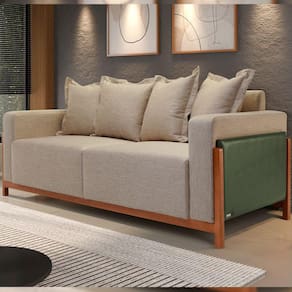 Sofá 03 Lugares Para Sala De Estar 198 cm Khali B04 Linho Bege Escuro Couríssimo Verde - Lyam - Bege Médio
