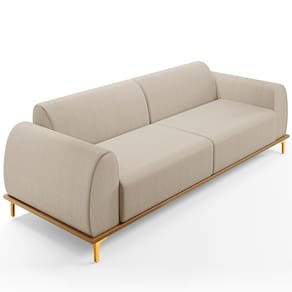 Com bastante idade e beleza ímpar o Sofá 03 Lugares Para Sala de Estar Kiev 210 cm D02 Linho Bege C-107 - Lyam Decor vem para requintar ainda mais sua decoração! Amplamente sofisticado, é ideal se você está buscando por uma peça elegante e confortável. Possui acabamento impecável, é estruturado em madeira de eucalipto tratada, unidas com grampos galvanizados, base envernizada e pés de alumínio com pintura epóxi na cor New Bronze que o tornam ainda mais atraente e convidativo.