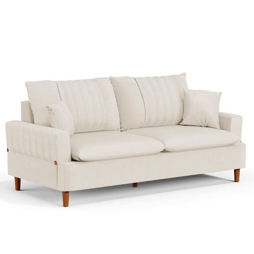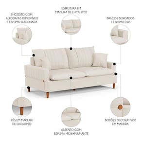 Nada melhor do que chegar em casa e poder descansar, não é mesmo? Então, vem conhecer o Sofá 180cm 3 Lugares com Almofadas Pés Curvos Veras Linho D05 Cru, da Mpozenato e surpreenda-se com o conforto!