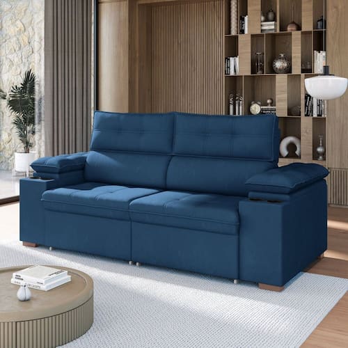 Sofá Retrátil e Reclinável Manaus. Com uma estrutura interna resistente, ele possui a estabilidade necessária para esse tipo de móvel, tendo o enchimento das almofadas em fibra siliconada, percintas elásticas italianas e molas bonnel, dão o suporte necessário para o conforto, sendo perfeito para acomodar você e as pessoas que ama naquela maratona de séries, ou até mesmo para descansarem aos finais de semana. Dê um up no visual da sua casa. Demais, né? Garanta já o seu! Produto Montado: Não Acompanha Almofadas extras: Não Almofada do assento: Fixa Almofada do encosto: Fixa Altura do assento até o chão: 45.0000 Altura do Encosto: 105 cm Altura dos Pés: 6 cm Altura Máxima dos Pés: 6.0000 Ambiente Principal: Sala de Estar Bipartida: Não codigo_ean: 7900288289308 Consistência do Assento: Médio Cor: Lux Cor do Produto: Lux Densidade do Assento: D-23 Enchimento do Assento: Espuma Enchimento do Encosto: Fibra Siliconada Estilo de Braço: Braços Quadrados Firmeza do Assento: Médio Gramatura do Tecido: 200 g/m² Informações Complementares: Não aplica Itens Inclusos: 1 Sofá Largura do Braço: 25 cm Linha ou Coleção: Manaus Marca: Ares Estofados Material da Corrediça do Sofá: Aço/Metal Material dos Pés: PVC Montagem Flex: Não aplica Necessita Montagem: Não Nível de Conforto: Macio Origem do Produto: Nacional Peso: 40 kg Peso Suportado por m²: 100 kg/m² Pet Friendly: Não Porta Copos: Sim Possui Baú: Não Possui Entrada USB: Não Possui Mola: Sim Possui Percintas Elásticas: Sim Possui Pés: 04 Possui Rodízio: Sim Profundidade Quando Estendido: 145 cm Quantidade de Estágios do Encosto: 5 Quantidade de Itens: 4 Quantidade de Molas por Assento: 2 Recomendações de Uso, Manutenção e Limpeza: Fazer a limpeza com aspirador de pó em baixa rotação ou escova com cerdas macias para a eliminação de poeira e pano úmido em água. Revestimento do Braço: Tecido Rodízio com Trava: Não Suporta Até (kg): 300 kg Tecido Predominante: Veludo Tipo de Encosto: Regulável Tipo de Mola: Molas Bonnel Tipo de Sofá: Sofá Comum Marca: Não Informado