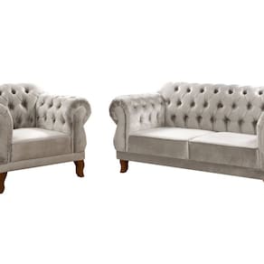 A entrega é realizada no térreo. Produto Montado: Sim Acompanha Almofadas extras: Não Almofada do assento: Removível Almofada do encosto: Não Possui Altura do assento até o chão: 0.0000 Altura do Encosto: 82 cm Ambiente Principal: Sala de Estar codigo_ean: 7909903854686 Complexidade da Montagem: Baixa: pode ser montado por uma pessoa sozinha Cor: Bege Claro Cor do Produto: Bege Claro Estilo de Braço: Braços Redondos Informações Complementares: 120Kg por acento Itens Inclusos: 1 Sofá 3 Lugares + 1 Sofá 2 Lugares (incluindo seus respectivos pés apenas pra enroscar) Linha ou Coleção: Chesterfield Necessita Montagem: Sim Origem do Produto: Nacional Peso: 90 kg Pet Friendly: Não Possui Percintas Elásticas: Sim Possui Pés: 04 Possui Rodízio: Não Quantidade de Itens: 2 Recomendações de Uso, Manutenção e Limpeza: Limpeza e cuidados: pode ser utilizado aspirador de pó, escova com cerdas macias ou limpeza a seco. Não utilizar produtos químicos, abrasivos ou limpeza a vapor. Evitar exposição prolongada ao sol. Sistema de Montagem: Enroscar os Pés Suporta Até (kg): 120 kg Tecido Predominante: Suede Tipo de Encosto: Fixo Tipo de Mola: Molas Ensacadas (Molas ensacadas)