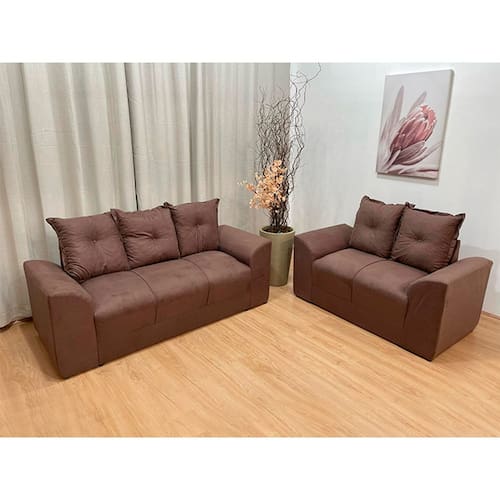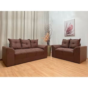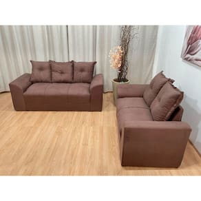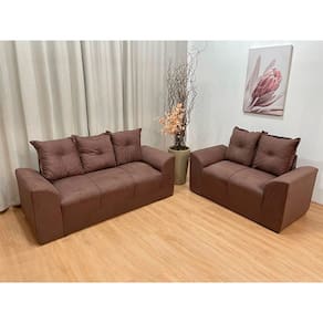 Sofá 2 e 3 Lugares Marrom 603 Porto O Sofá 3 e 2 lugares Marrom Modelo Porto é um produto de extrema qualidade e conforto. Além disso, vai deixar sua sala mais bonita e aconchegante. Acima de tudo, muito resistente, produzido com madeira de eucalipto de reflorestamento, ecologicamente correto. MEDIDAS SOFÁ 2 LUGARES: Altura: 96 cmLargura: 1.40 mProfundidade: 72 cm MEDIDAS SOFÁ 3 LUGARES: Altura: 96 cmLargura: 1.80 mProfundidade: 72 cm Assento: Assento em espuma 20, com flocos de espuma e persinta pneumática Encosto: Encosto de almofadas soltas com flocos de espuma. Braços: Braços em espuma 23. Estrutura: A estrutura de madeira eucalipto de reflorestamento, produto ecologicamente correto e na fixação são utilizados grampos galvanizados. Revestimento: O revestimento é em Tecido Sued.