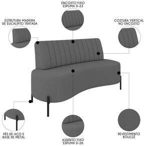 O Sofá 2 Lugares 135cm Pés Aço Preto Tamar Z08 Boucle Grafite, da Mpozenato é a escolha ideal para quem busca um móvel que combina estilo e funcionalidade.