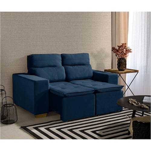 Sofá Modular 2 Lugares Marabá 150cm Com Molas, Retrátil E Reclinável Com Tecido Veludo Nobre Sofatec Azul