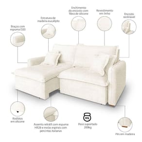 Assento: Retrátil com percintas elásticas italianas, molas bonel, espuma HR28 + plumante em silicone