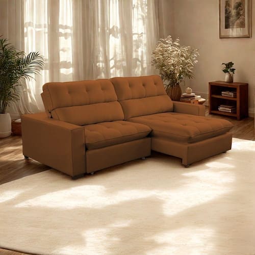 O Sofá Andreia une praticidade e conforto em um design moderno, ideal para quem busca um estofado funcional sem abrir mão da qualidade. Com revestimento em veludo, disponível em diversas cores, oferece toque macio e acabamento sofisticado.