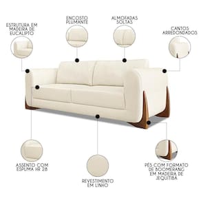 O Sofá 2 Lugares Base de Madeira 180cm Izzy S06 Linho Natural, da Mpozenato é uma expressão de conforto e elegância, projetada para ser mais do que um simples assento.