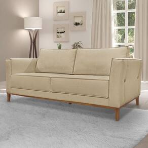 Sofá 2 Lugares Base de Madeira Grace 190 cm Linho S04 - D`Rossi - Bege Médio