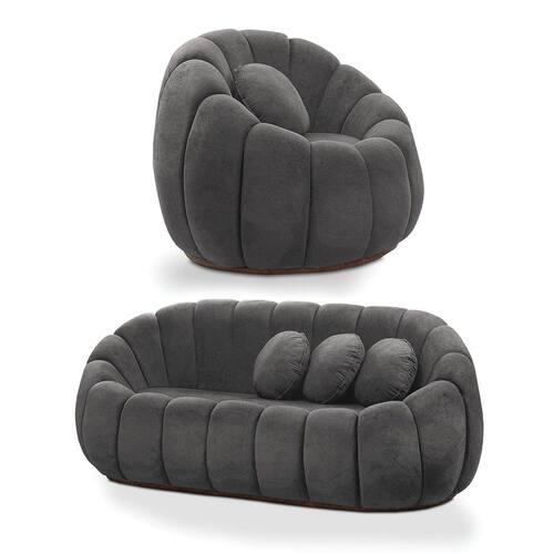 O Sofá Namoradeira e Poltrona Giratória Cloud é um kit que combina formas artísticas, conforto e durabilidade. Ele tem um design orgânico que remete às formas encontradas na natureza como as nuvens criando um espaço acolhedor e relaxante. Além da sua simetria e curvas suaves, a poltrona possui base arco giratório e a namoradeira contém sapatas plásticas (Fixa), ambos com revestimento em tecido Bouclê que cria uma conexão entre a peça e o ambiente. Pode ser utilizado em sala de estar, recepções, escritórios, lojas e espaços comerciais, ou qualquer outro espaço que você queira decorar com estilo e bom gosto. Ele tem uma estrutura em madeira de reflorestamento eucalipto, que garante a resistência e a sustentabilidade do produto. Ele suporta até 180 kg de peso, podendo ser utilizada por pessoas de diferentes biotipos. Inclui almofada solta com enchimento de fibra siliconada, oferecendo versatilidade para diferentes usos e necessidades. Ele tem um acabamento reforçado e espuma de qualidade D24, que oferece maciez e aconchego. Ele apresenta detalhes de costura refinados em formato arredondado resultando em um acabamento impecável conferindo muito mais valor e elegância ao produto. Ele é fácil de transportar, pois tem um peso leve e um tamanho compacto. O Sofá Namoradeira e Poltrona Giratória Cloud é um conjunto que vai fazer a diferença na sua decoração e no seu bem-estar. Garanta já o seu!