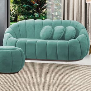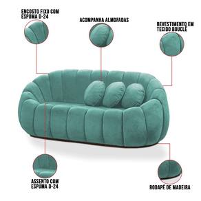 Sofá 2 Lugares com Poltrona Giratória Orgânica Cloud Bouclê E03 - D`Rossi - Azul Turquesa