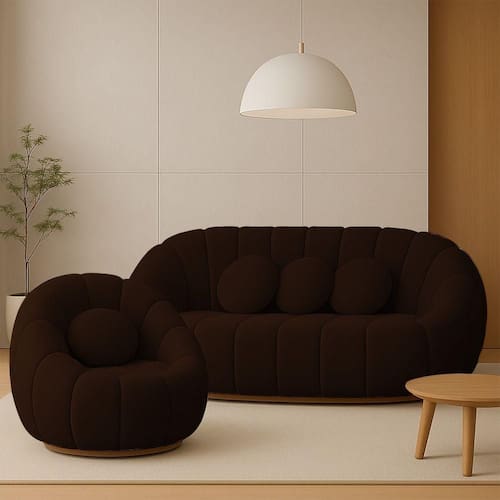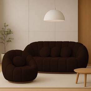 Estrutura em madeira de eucalipto reflorestado, revestimento em bouclê.Vendido e entregue por WebContinental
