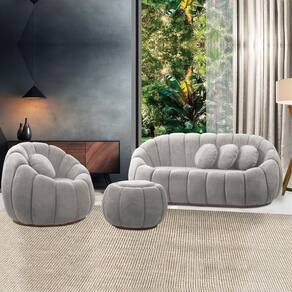 O Sofá 2 Lugares com Puff e Poltrona Giratória Cloud é um kit que combina formas artísticas, conforto e durabilidade. Ele tem um design orgânico que remete às formas encontradas na natureza como as nuvens criando um espaço acolhedor e relaxante. Além da sua simetria e curvas suaves, a namoradeira e o puff contém sapatas plásticas (Fixa), já a poltrona conta com base arco giratório, esse kit possui um revestimento em tecido Bouclê que cria uma conexão entre a peça e o ambiente. Pode ser utilizado em sala de estar, recepções, escritórios, lojas e espaços comerciais, ou qualquer outro espaço que você queira decorar com estilo e bom gosto. Ele tem uma estrutura em madeira de reflorestamento eucalipto, que garante a resistência e a sustentabilidade do produto. Ele suporta até 180 kg de peso, podendo ser utilizada por pessoas de diferentes biotipos. Inclui almofada solta com enchimento de fibra siliconada, oferecendo versatilidade para diferentes usos e necessidades. Ele tem um acabamento reforçado e espuma de qualidade D24, que oferece maciez e aconchego. Ele apresenta detalhes de costura refinados em formato arredondado resultando em um acabamento impecável conferindo muito mais valor e elegância ao produto. Ele é fácil de transportar, pois tem um peso leve e um tamanho compacto. O Sofá 2 Lugares com Puff e Poltrona Giratória Cloud é um conjunto que vai fazer a diferença na sua decoração e no seu bem-estar. Garanta já o seu!