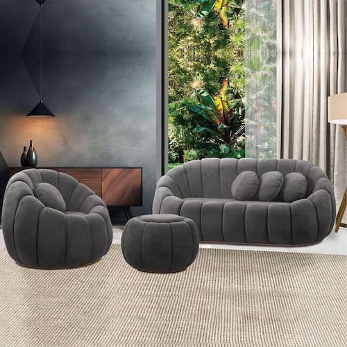 Sofá 2 Lugares Com Puff E Poltrona Orgânica Fixa Cloud Bouclê E03 - D'rossi Cinza Escuro Renove sua decoração com o Sofá 2 Lugares com Puff e Poltrona Cloud, uma peça moderna e funcional que combina conforto, estilo e praticidade. Ideal para salas de estar, quartos ou home office, seu design contemporâneo valoriza qualquer espaço da casa. Produzida com estrutura em madeira de eucalipto reflorestado, oferece resistência e durabilidade no uso diário. O assento é composto por espuma de densidade D-24, que proporciona maciez e suporte equilibrado para seu conforto. O revestimento em bouclê combina suavidade ao toque com um visual refinado. Acompanha almofada decorativa com enchimento em fibra siliconada, para maior conforto. Os pés fixos com sapatas plásticas garantem estabilidade e proteção ao piso. Compacto e elegante, esse conjunto é ideal para quem busca um móvel versátil e sofisticado. Dimensões da Poltrona: Altura Total: 83 cm Largura Total: 100 cm Profundidade Total: 93 cm Tamanho dos pés: 2 cm Peso: 29 Kg Dimensões da Namoradeira: Altura Total: 83 cm Largura Total: 190 cm Profundidade Total: 93 cm Tamanho dos pés: 2 cm Peso: 38 kg Dimensões do Puff: Altura Total: 38 cm Largura Total: 60 cm Profundidade Total: 60 cm Tamanho dos pés: 2 cm Peso: 21 kg Especificações do Produto: Estrutura: Madeira Eucalipto Reflorestada Densidade da espuma: D-24 Revestimento: Tecido Bouclê Peso Suportado: Até 180 Kg Tipo de Pés: Sapatas Plásticas (Fixa) Diferenciais: Design moderno; Acompanha almofada decorativa, com enchimento de fibra siliconada. Complexidade da Montagem: Baixo Montagem: O produto vai montado, apenas rosquear as sapatas plásticas Garantia: 90 dias contra defeito de fabricação Instruções de Limpeza: Utilizar um pano limpo e levemente úmido Quantidade de Volumes 3 Caixas Medida das Embalagens Caixa 1: 86 cm x 193 cm x 96 cm; Caixa 2: 86 cm x 103 cm x 96 cm e Caixa 3: 41 cm x 63 cm x 63 cm Entrega: É feita somente até o térreo ou portaria. Não levamos em andares superiores. Confira sempre as medidas das embalagens.
