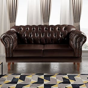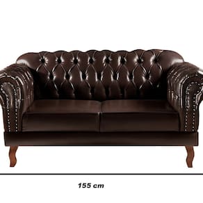 Sofá 2 Lugares Decoração Sara Recepção Dom Pedro Chesterfield Café - Marrom