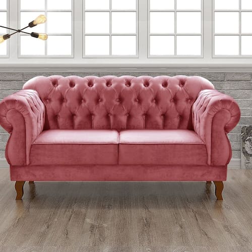 A entrega é realizada no térreo. Produto Montado: Sim Acompanha Almofadas extras: Não Almofada do assento: Removível Almofada do encosto: Não Possui Altura do assento até o chão: 0.0000 Altura do Encosto: 82 cm Ambiente Principal: Sala de Estar codigo_ean: 7909903848036 Complexidade da Montagem: Baixa: pode ser montado por uma pessoa sozinha Cor: Rosa Cor do Produto: Rosa Informações Complementares: 120Kg por acento Itens Inclusos: 1 Sofá 2 Lugares Duquesa (incluindo seus respectivos pés apenas pra enroscar) Linha ou Coleção: Chesterfield Necessita Montagem: Sim Origem do Produto: Nacional Peso: 35 kg Pet Friendly: Não Possui Percintas Elásticas: Sim Possui Pés: 04 Possui Rodízio: Não Recomendações de Uso, Manutenção e Limpeza: Limpeza e cuidados: pode ser utilizado aspirador de pó, escova com cerdas macias ou limpeza a seco. Não utilizar produtos químicos, abrasivos ou limpeza a vapor. Evitar exposição prolongada ao sol. Sistema de Montagem: Enroscar os Pés Suporta Até (kg): 120 kg Tecido Predominante: Suede Tipo de Encosto: Fixo Tipo de Mola: Não Possui