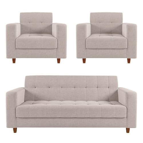 Sofá 2 Lugares E 2 Poltronas Pé Madeira Castanho Arezo Linho D01 - D'rossi Cor A19 Bege O Conjunto Arezo, composto por Sofá de 2 lugares e 2 Poltronas em linho, combina design moderno, acabamento sofisticado e conforto duradouro. Seu revestimento de toque macio traz elegância e harmonia aos ambientes, enquanto a costura detalhada no assento e encosto valoriza o visual com um toque artesanal. A estrutura em madeira de eucalipto reflorestado oferece excelente resistência, sustentando até 120 kg por assento, enquanto a espuma D-23 de alta densidade garante conforto uniforme e sustentação ideal. Os pés chanfrados em madeira castanho completam o estilo contemporâneo, proporcionando firmeza e charme extra à decoração da sala. Ideal para quem busca unir beleza, qualidade e funcionalidade, o conjunto Arezo transforma o ambiente em um espaço acolhedor, elegante e convidativo perfeito para momentos de descanso, leitura ou receber visitas com muito estilo. Dimensões Poltrona: Altura total: 86 cm Largura total: 81 cm Profundidade total: 72 cm Altura do encosto: 45 cm Largura do assento: 51 cm Profundidade do assento: 51 cm Altura do chão ao assento: 44 cm Espessura do assento: 34 cm Tamanho dos pés: 10 cm Altura do chão ao braço: 64 cm Altura interna do braço: 17 cm Espessura do braço: 14 cm Peso: 16 kg Dimensões Sofá: Altura Total: 87 cm Largura Total: 180 cm Profundidade Total: 75 cm Altura do Encosto: 46 cm Largura do Livre do Assento: 150 cm Profundidade do Assento: 50 cm Altura do chão ao Assento: 45 cm Espessura do Assento: 20 cm Tamanho dos Pés: 10 cm Altura do chão ao Braço: 64 cm Altura interna do Braço: 19 cm Espessura do Braço: 15 cm Peso: 36 kg Especificações do Produto: Estrutura: Madeira de Eucalipto Material do Estofamento: Espuma D-23 (alta densidade) Revestimento: Linho Peso Máximo Suportado: Até 120 Kg Tipo de Pés: Pés Chanfrado Material/Acabamento Pé/Base: Madeira Inclui Almofada Extra: Não Tipo de Encosto: Fixo Tipo de Assento: Fixo Reclinável: Não Retrátil: Não Diferenciais: Design moderno; Costura detalhada no assento e no encosto. Complexidade da Montagem: Baixa Montagem: O produto vai montado, apenas rosquear os pés. Garantia: 90 dias contra defeito de fabricação Instruções de Limpeza: Utilizar um pano limpo e levemente úmido Quantidade de Volumes: 3 Caixas Medida das Embalagens: Caixa 1: 159 cm x 158 cm x 101 cm; Caixa 2: 90cm x 78 cm x 78 cm; Caixa 3: 90cm x 78 cm x 78 cm Peso das Embalagens: 86 kg Entrega: É feita somente até o térreo ou portaria. Confira sempre as medidas das embalagens para assegurar que o produto passe por portas e escadas do local.