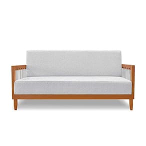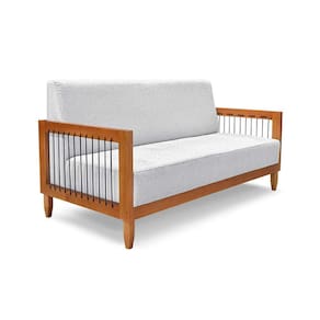 sofá 2 lugares elisabeth linho grigio e madeira - Cinza