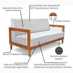 que tal o sofá elisabeth? com 2 lugares, o sofá elisabeth deixa sua sala de estar ou espaço gourmet muito aconchegante. além do enchimento em espuma hr23, hr28 e plumante de silicone, que apresentam ótima adaptabilidade e conforto sem igual, ele  ainda é reforçado por percintas elásticas. revestido em tecido de toque io, o móvel tem estrutura em madeira iça e cor atemporal, tudo isso para arrancar elogios de todos por aí!