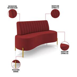 O Sofá 2 Lugares Maraú de 135 cm é uma peça que combina funcionalidade, conforto e durabilidade. Ele tem um design curvilíneo e sofisticado e revestimento em tecido Veludo Vermelho, que harmonizam com qualquer ambiente. Ele é ideal para sala de estar, escritório, recepção, salão de beleza, estúdio fotográfico ou em qualquer outro espaço que você queira decorar com estilo e bom gosto. Ele tem uma estrutura em madeira de Eucalipto Tratada Fixados em Chapas Conificadas, que garante a resistência e a sustentabilidade do produto. Ele suporta até 120 kg de peso, podendo ser utilizado por pessoas de diferentes biotipos. Ele tem um acabamento reforçado com espuma de densidade D-26 e Percintas Elásticas presente no Assento, no Encosto Fixo contém Espuma D-23 Com Percintas Elásticas, Pontos De Tensão Fixos Com Grampos Galvanizados. Os pés são de Ferro Dourado proporcionando um suporte confortável para o corpo, permitindo que você relaxe com facilidade após um longo dia. Seja lendo um livro, assistindo televisão ou simplesmente descansando, este sofá oferece o conforto necessário para momentos de tranquilidade. Uma das características mais distintivas do Sofá 2 Lugares Maraú é suas curvas e formas arredondadas e os detalhes do encosto com linhas retas gomada, garantindo aconchego ideal. O Sofá Maraú é um produto de alta qualidade, beleza e funcionalidade. Ele é fácil de transportar, pois tem um peso leve e um tamanho compacto. O Sofá Maraú é um produto que vai fazer a diferença na sua decoração e no seu bem-estar. Ele vai trazer charme, conforto e durabilidade para o seu ambiente. Aproveite essa oferta e leve para casa um móvel de qualidade por um preço incrível. Essa é a sua chance de ter um Sofá maravilhoso por um preço imperdível. Corra e garanta o seu antes que acabe o estoque!