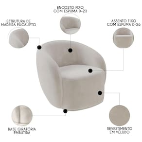 O conjunto de Sofá 2 Lugares e Poltrona são revestidos com o elegante veludo, um tecido suave ao toque e de ótima qualidade. A combinação de materiais sustentáveis, como a madeira de eucalipto reflorestada, com a tecnologia das percintas elásticas, cria uma estrutura robusta de qualidade. A espuma D26 presente nos assentos, e D23 nos encostos, oferece um conforto excepcional, convidando a momentos de relaxamento e lazer na Sala de Estar. O movimento giratório da poltrona com uma base de ferro embutida, adiciona um toque de diversão e praticidade, permitindo que você se mova livremente e interaja com o ambiente ao seu redor. Estes móveis não são apenas peças funcionais, mas também elementos que enriquecem a decoração, transformando qualquer espaço em um convite ao conforto e ao estilo.