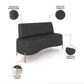 O Sofá 2 Lugares Maraú de 160 cm é uma peça que combina funcionalidade, conforto e durabilidade. Ele tem um design curvilíneo e sofisticado e revestimento em tecido PU, que harmonizam com qualquer ambiente. Ele é ideal para sala de estar, escritório, recepção, salão de beleza, estúdio fotográfico ou em qualquer outro espaço que você queira decorar com estilo e bom gosto. Ele tem uma estrutura em madeira de Eucalipto Tratada Fixados em Chapas Conificadas, que garante a resistência e a sustentabilidade do produto. Ele suporta até 120 kg de peso, podendo ser utilizado por pessoas de diferentes biotipos. Ele tem um acabamento reforçado com espuma de densidade D-26 e Percintas Elásticas presente no Assento, no Encosto Fixo contém Espuma D-23 Com Percintas Elásticas, Pontos De Tensão Fixos Com Grampos Galvanizados. Os pés são de Ferro Dourado proporcionando um suporte confortável para o corpo, permitindo que você relaxe com facilidade após um longo dia. Seja lendo um livro, assistindo televisão ou simplesmente descansando, este sofá oferece o conforto necessário para momentos de tranquilidade. Uma das características mais distintivas do Sofá 2 Lugares Maraú é suas curvas e formas arredondadas e os detalhes do encosto com linhas retas gomada, garantindo aconchego ideal. O Sofá Maraú é um produto de alta qualidade, beleza e funcionalidade. Ele é fácil de transportar, pois tem um peso leve e um tamanho compacto. O Sofá Maraú é um produto que vai fazer a diferença na sua decoração e no seu bem-estar. Ele vai trazer charme, conforto e durabilidade para o seu ambiente. Aproveite essa oferta e leve para casa um móvel de qualidade por um preço incrível. Essa é a sua chance de ter um Sofá maravilhoso por um preço imperdível. Corra e garanta o seu antes que acabe o estoque!